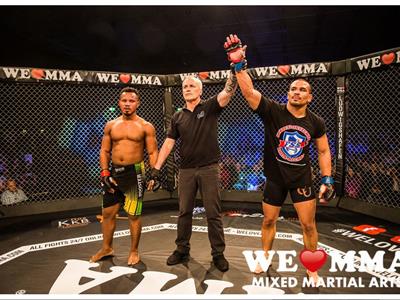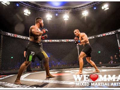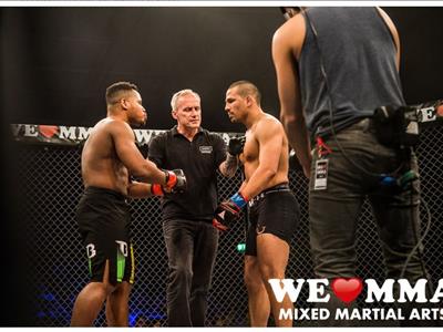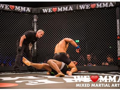 Nach seinem überzeugenden Debütsieg bei der Kampfsportserie "We love MMA" im vergangenen Jahr gegen Stevano Tuepke (Ghana) stand Bundesligaringer Carsten Kopp (84 kg) im alten E-Werk in Heilbronn erneut im Octagon. Kopp, der bereits bei den Junioren Deutscher Meister in der russisch angehauchten Kampftsportart Sambo war aber auch zur Deutschen Spitze im Judo zählte, traf mit Arthur Reimche auf einen scheinbar körperlich deutlich überlegenen Gegner. Doch nach einem längeren "Beschnuppern" in Runde eins zwang er dem amtierenden Internationalen Deutschen Meister im Brazilian Jiu Jitus immer mehr seinen Stil auf und überzeugte mit spekatakulären Beinangriffen und kontrollierte seinen Gegner fortan. Bereits im ersten Kampfabschnitt stand der Kampf kurz vor dem Abbruch als der Erstligaringer seinem Kontrahenten nach einem erneuten Takedown einen schweren Cut am linken Auge zufügen konnte, jedoch rettete letztendlich der Pausengong Reimche vor dem technischen K.O. Auch in den folgenden beiden Runden (3 x 5 Minuten Kampfzeit) ließ Kopp nicht anbrennen und zwang seinen Gegner mit seinem agressiven Stil stets in die Defensive, wobei nur der rutschige Mattenboden ein vorzeitiges Aus für den Kämpfer vom Team Taurus Lahr verhinderte.