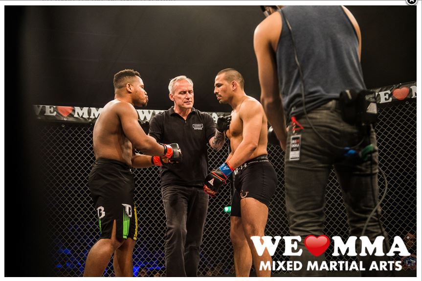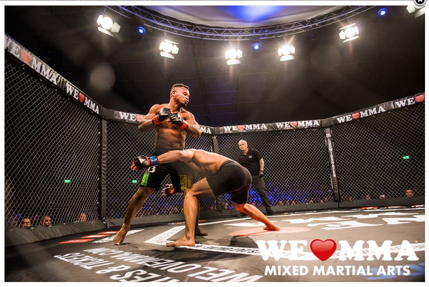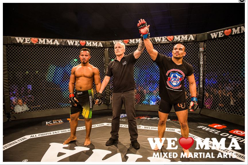 Nach seinem überzeugenden Debütsieg bei der Kampfsportserie "We love MMA" im vergangenen Jahr gegen Stevano Tuepke (Ghana) stand Bundesligaringer Carsten Kopp (84 kg) im alten E-Werk in Heilbronn erneut im Octagon. Kopp, der bereits bei den Junioren Deutscher Meister in der russisch angehauchten Kampftsportart Sambo war aber auch zur Deutschen Spitze im Judo zählte, traf mit Arthur Reimche auf einen scheinbar körperlich deutlich überlegenen Gegner. Doch nach einem längeren "Beschnuppern" in Runde eins zwang er dem amtierenden Internationalen Deutschen Meister im Brazilian Jiu Jitus immer mehr seinen Stil auf und überzeugte mit spekatakulären Beinangriffen und kontrollierte seinen Gegner fortan. Bereits im ersten Kampfabschnitt stand der Kampf kurz vor dem Abbruch als der Erstligaringer seinem Kontrahenten nach einem erneuten Takedown einen schweren Cut am linken Auge zufügen konnte, jedoch rettete letztendlich der Pausengong Reimche vor dem technischen K.O. Auch in den folgenden beiden Runden (3 x 5 Minuten Kampfzeit) ließ Kopp nicht anbrennen und zwang seinen Gegner mit seinem agressiven Stil stets in die Defensive, wobei nur der rutschige Mattenboden ein vorzeitiges Aus für den Kämpfer vom Team Taurus Lahr verhinderte.