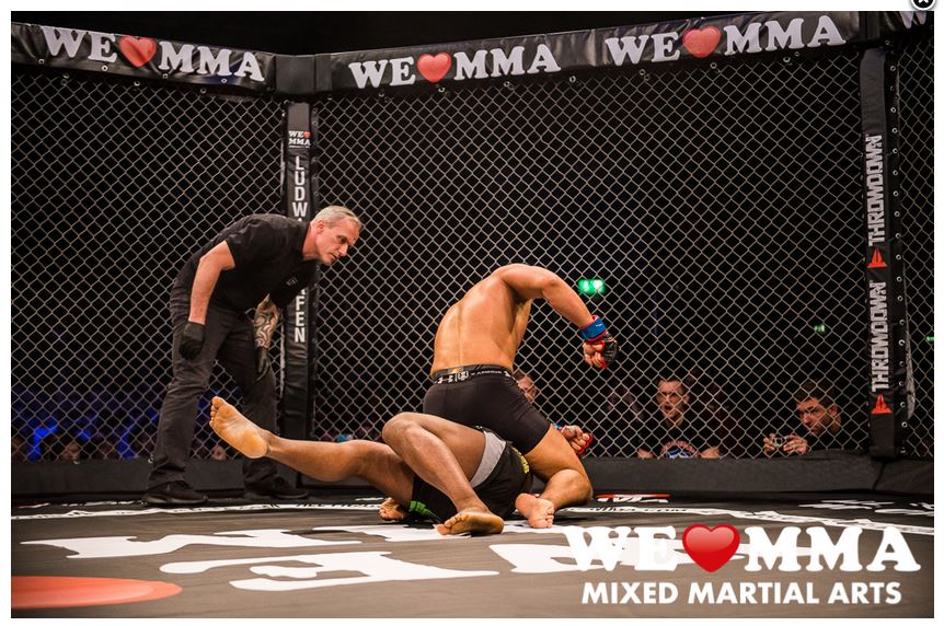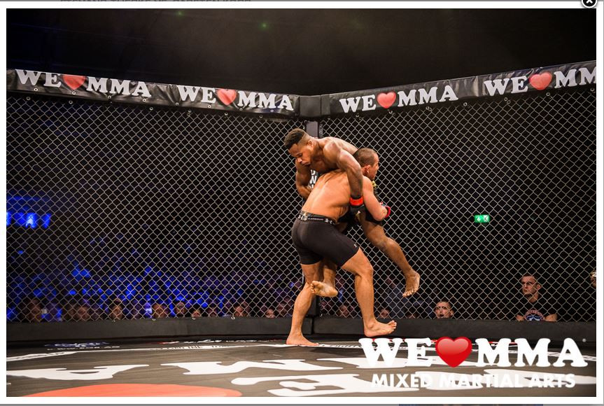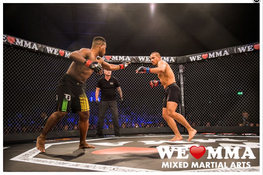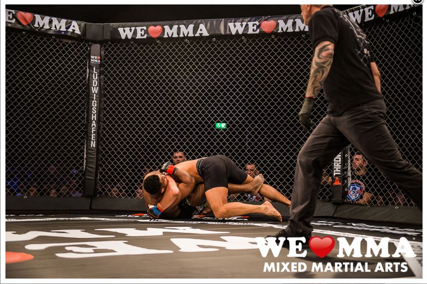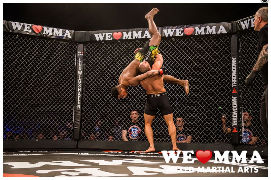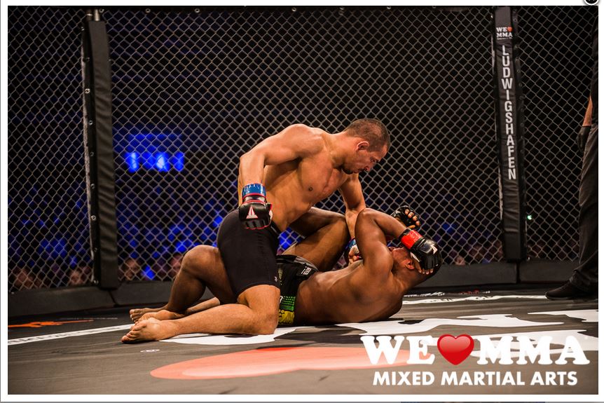 Bundesligaringer Carsten Kopp gibt für das FSS Kampfsportzentrum Rhein-Neckar sein MMA-Debüt bei We love MMA. Dabei überzeugt er mit spektakulären Takedowns und Top Control gegen seinen Gegner aus Ghana und holt sich einen eindeutigen Punktsieg. Gratulation, weiter so!